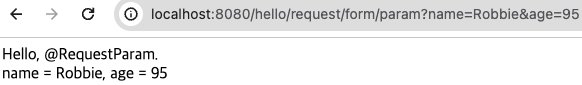 // GET http://localhost:8080/hello/request/form/param?name=Robbie&age=95