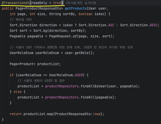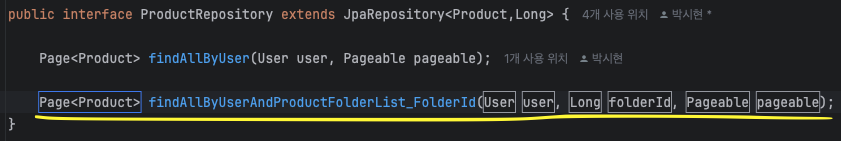 Page<Product> products = productRepository.findAllByUserAndProductFolderList_FolderId(user, folderId, pageable);