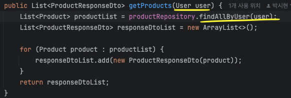 List<Folder> folderList = folderRepository.findAllByUser(user);