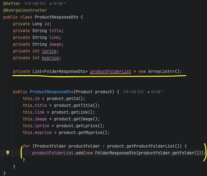 List<FolderResponseDto> responseDtoList = new ArrayList<>();
