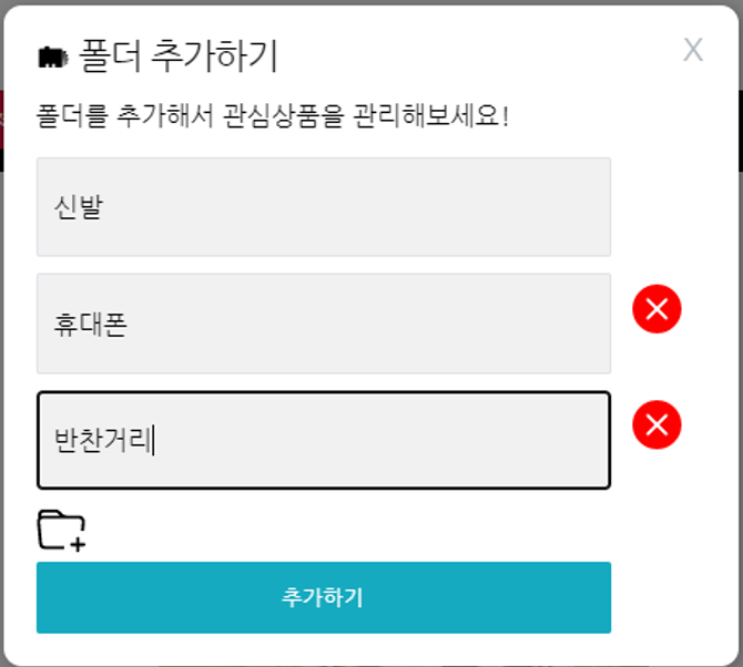 - 관심상품 별로 기 생성 했던 폴더를 선택하여 추가가능