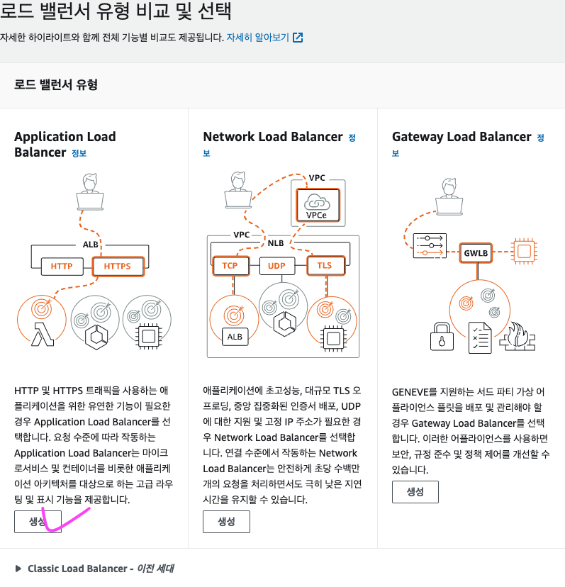 가장 오래된 형태의 로드 밸런서이며, 대부분의 경우 Application Load Balancer나 Network Load Balancer를 사용하는 것이 좋음