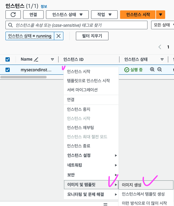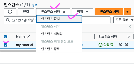 → myinstance1을 중단시키고 다시 실행시 myinstance2의 private IPv4 주소만 나오게 됨!