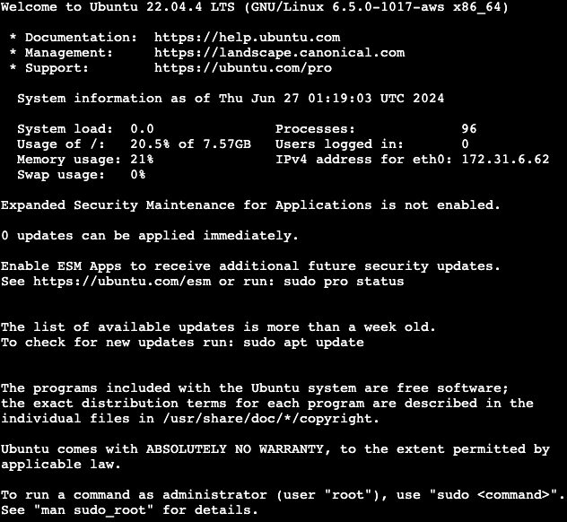 → 원격 서버의 터미널로 연결되어 명령을 입력할 수 있는 상태가 됨