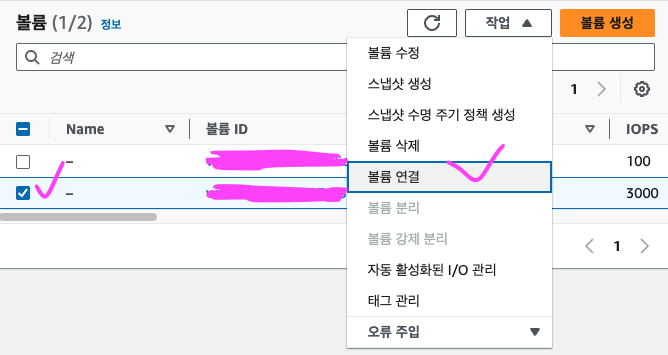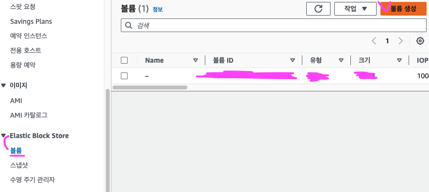 - 하나의 EBS는 하나의 인스턴스에만 연결될 수 있지만 하나의 인스턴스에는 여러개의 EBS가 연결될 수 있음