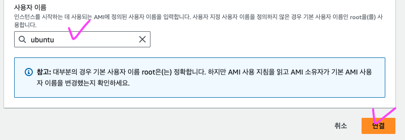 - ubuntu@[public IPv4주소]: 원격 서버의 사용자명과 IP 주소