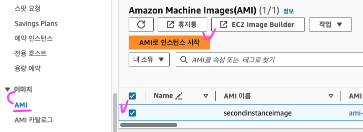 - EC2 인스턴스를 생성할 때 사용되며 운영 체제와 애플리케이션, 라이브러리 등이 포함되어 있음