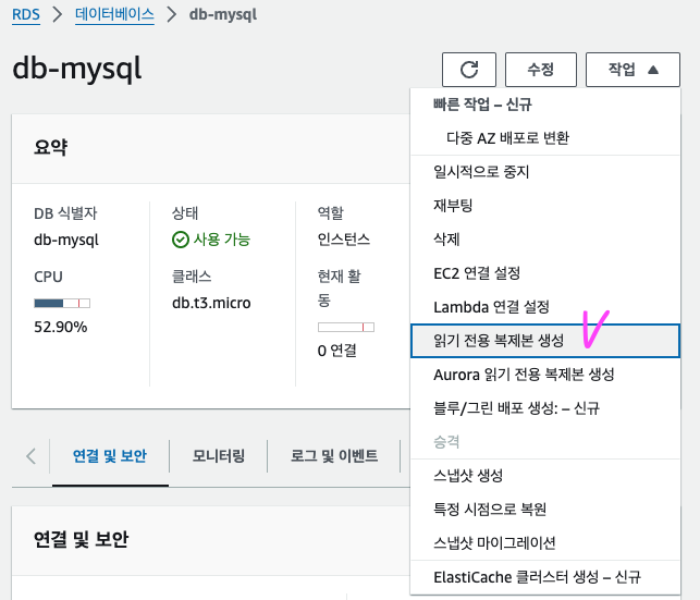 ㄴ read replica는 오직 SELECT문만 가능 (INSERT, UPDATE, DELETE는 불가능!)